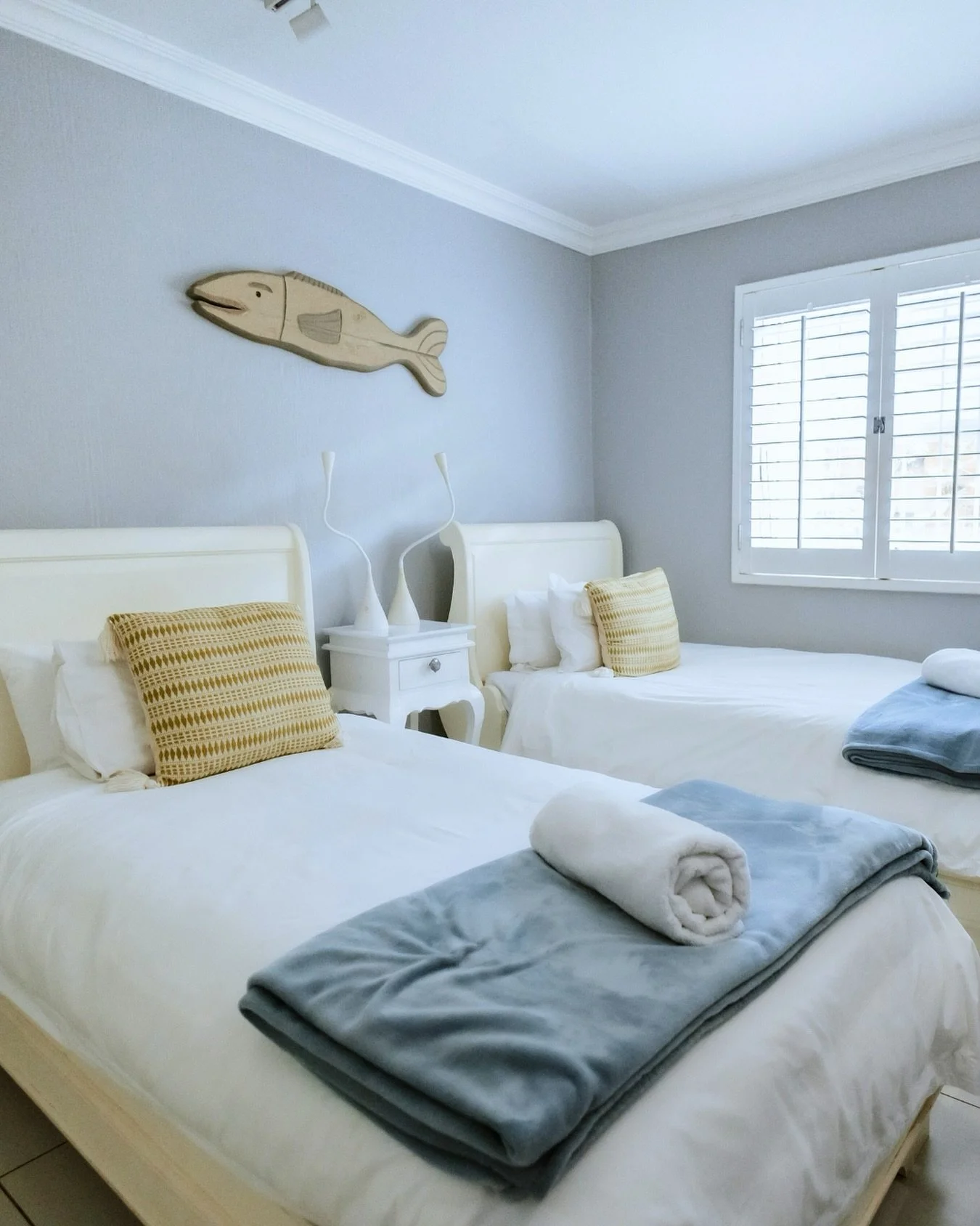 Chakas Cove (Unit 48) is located in a secure complex on Shaka's Rock beachfront. The apartment features three air-conditioned bedrooms and two bathrooms. The main bedroom includes a king-size bed, the second bedroom has a queen-size bed, and the third bedroom is furnished with two single beds.